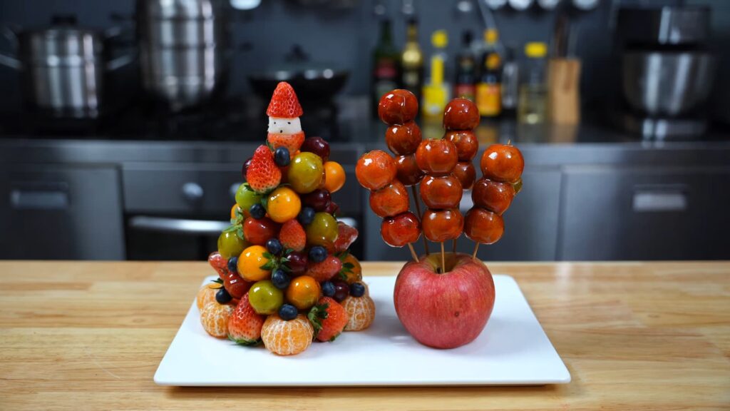 Если что-то в китайском стритфуде и выглядит по-настоящему сказочно, так это тангхулу (糖葫芦) — фрукты на длинной бамбуковой шпажке, покрытые хрустящей глазурью из карамелизированного сахара. Традиционно их делали из боярышника (шаньчжа), но сегодня в глазури «купают» клубнику, виноград, мандарины, киви, томаты черри и даже ананас.