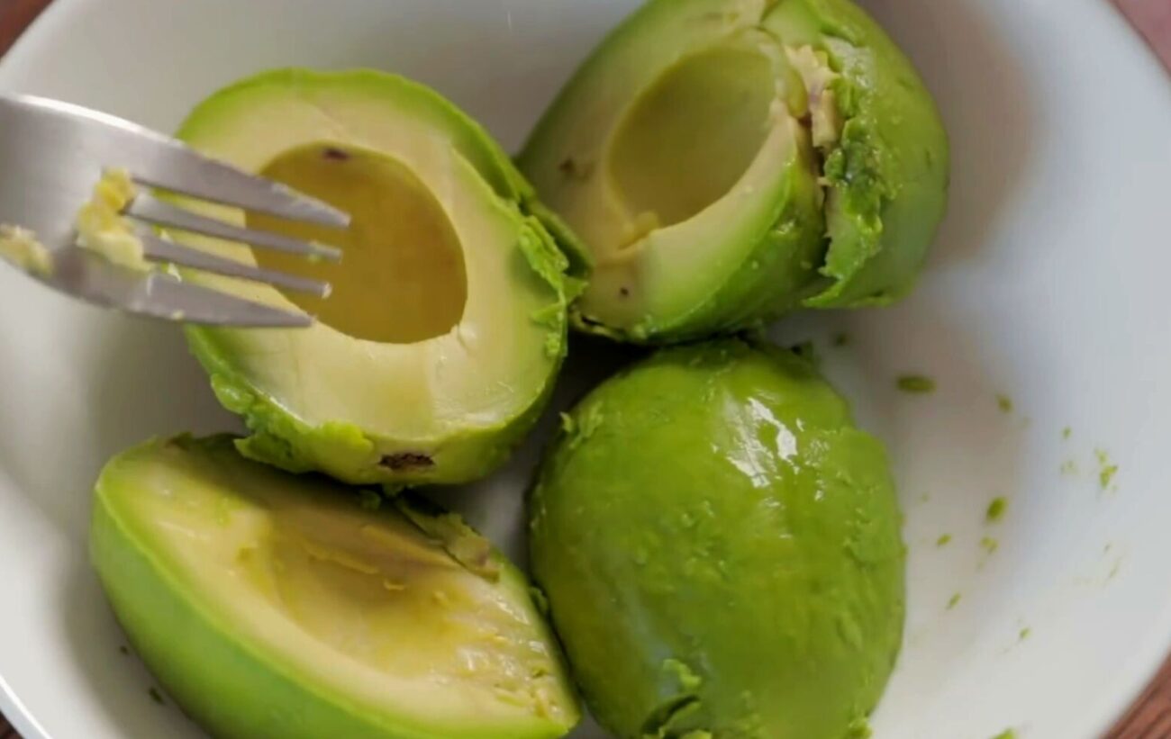 1 Done | Авокадо разрезаем пополам. Мякоть отделяем от косточек и кожуры. |
