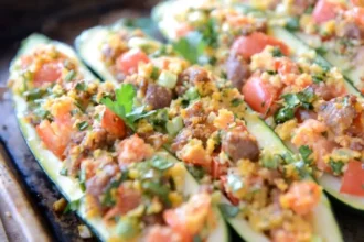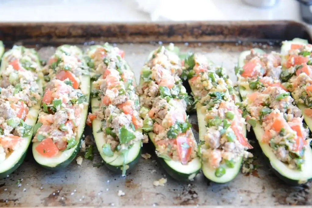 Ставим в духовку и запекаем 15-20 минут. Начинка должна подрумяниться, а кабачок стать мягким, но не разваливаться, а приобрести кондицию “аль денте”.
