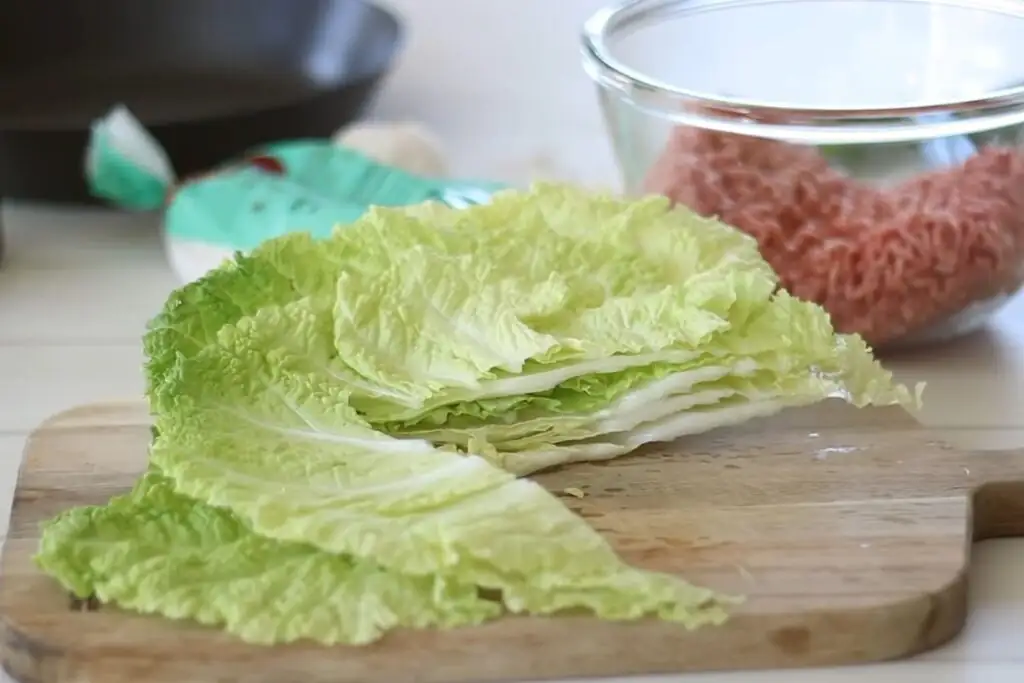 Пекинскую капусту можете заменить на савойскую или молодую белокочанную, пока листья еще зеленые и мягкие.