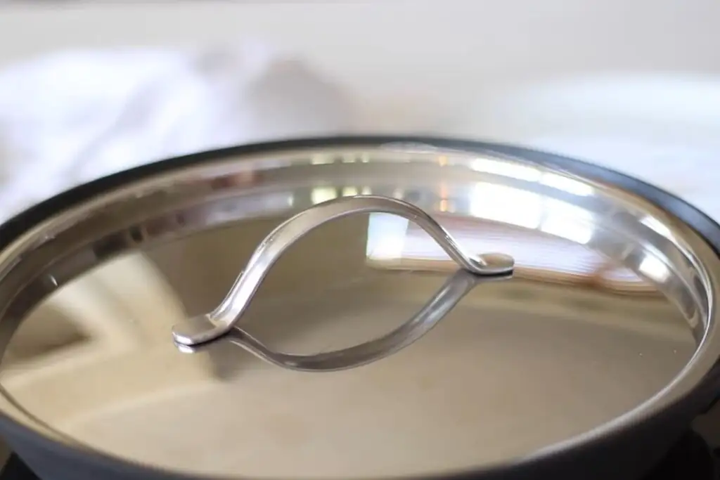 Через 5 минут добавьте ¼ стакана воды, уменьшите огонь до минимального, накройте крышкой и оставьте еще на 5 минут или до готовности.