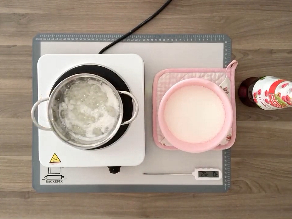 1 Done | Разогрейте кастрюльку с толстым дном. Когда она станет горячей, убавьте огонь и насыпьте изомальт. Сразу интенсивно помешивайте. Изомальт растворяется очень быстро. Нагрейте массу до температуры 170-180 градусов, не выше, иначе изомальт начинает гореть. |