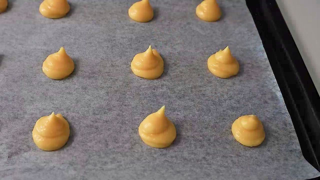 7 Done | На пергаментную бумагу отсаживаем нужное количество профитролей — оставляйте большое расстояние между единицами, так как тесто увеличится в несколько раз! |