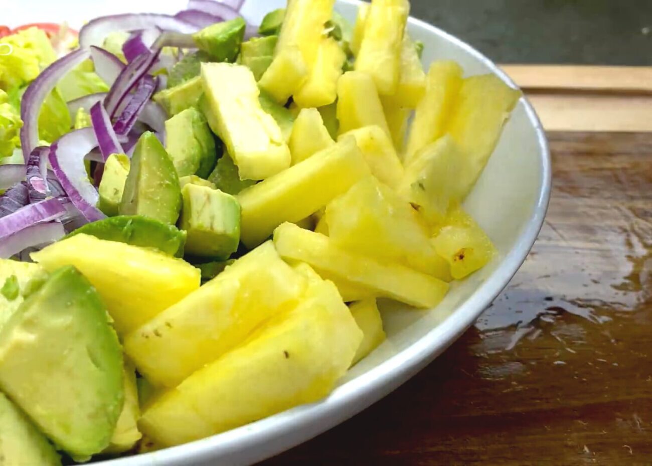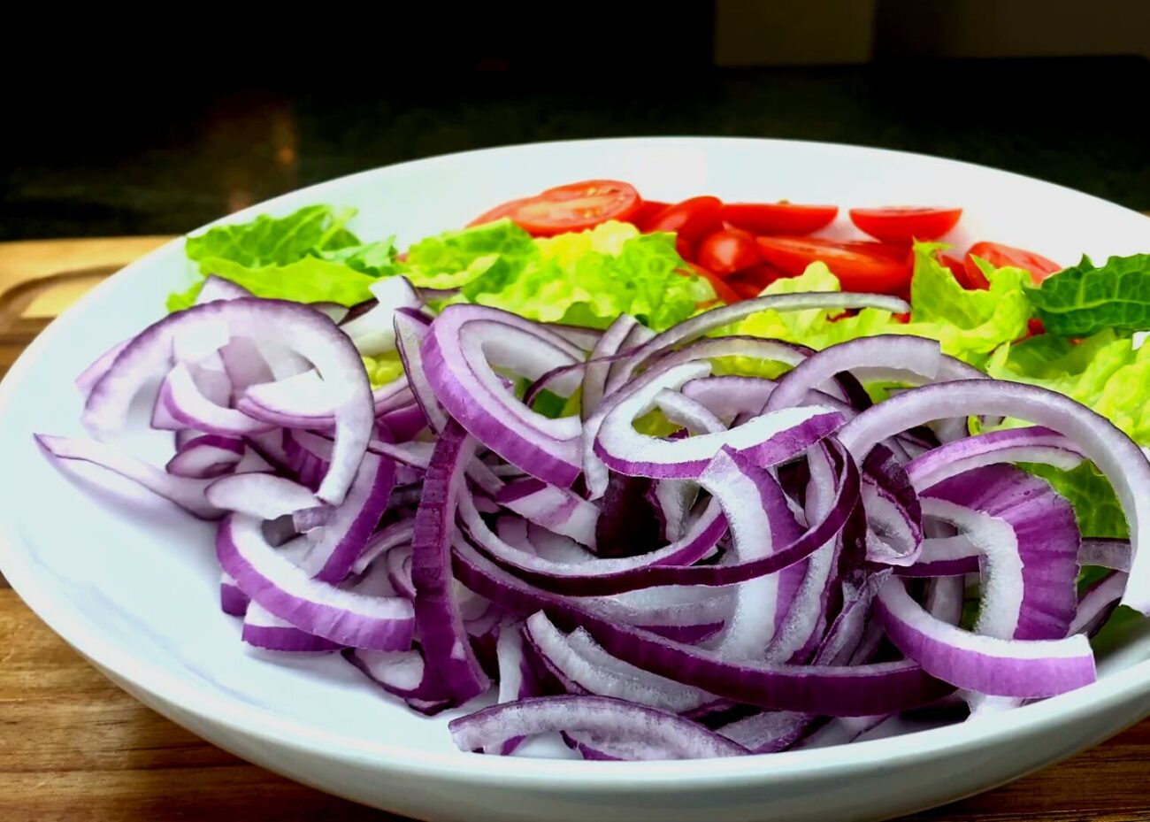 - 0,5 штуки Красный салатный лукИспользуйте половинку крупной луковицы, или 1 целую, если ваш лук мельче.