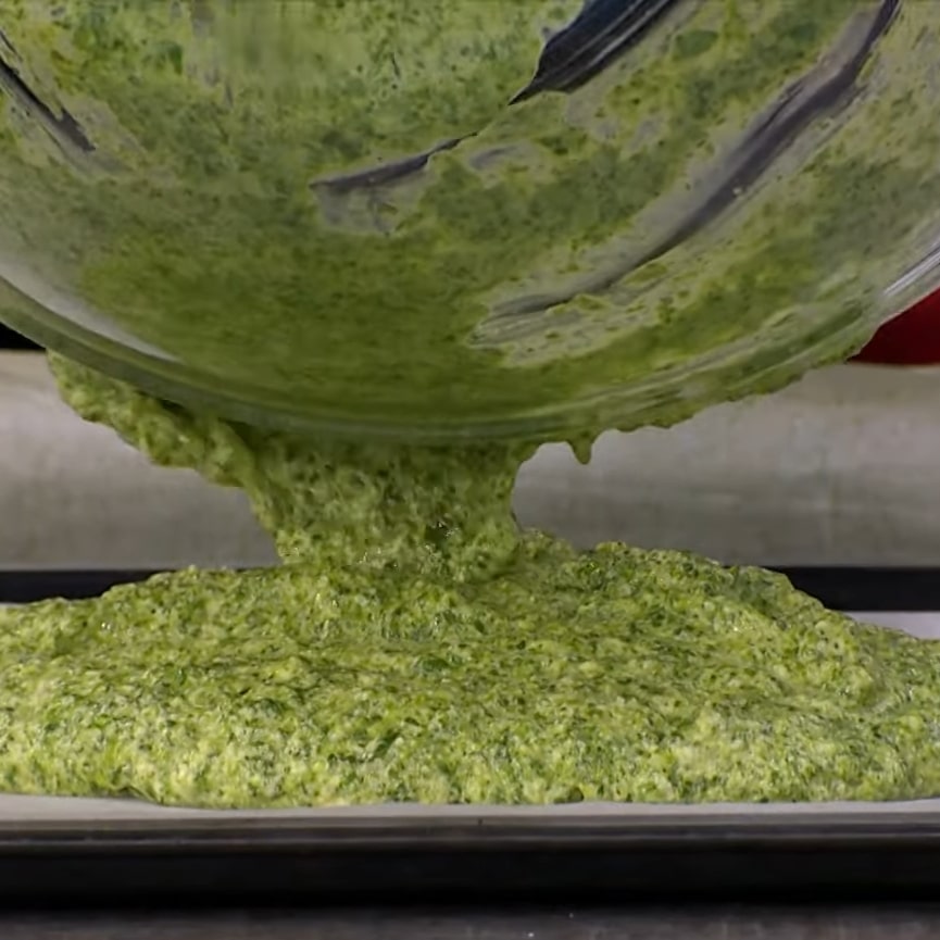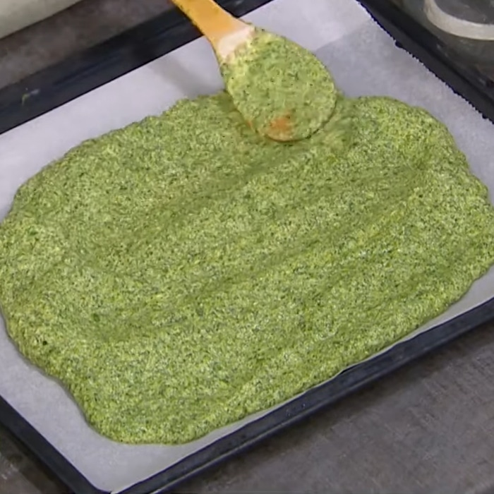 4 Done | Высота коржа должна быть не более 1 см. Удобнее взять противень большего размера и ориентироваться на объем шпинатной массы. |