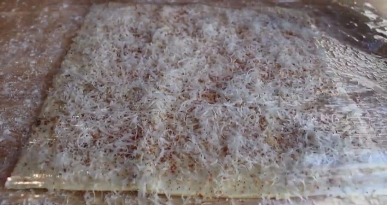 4 Done | Накройте тесто полиэтиленовой пленкой и плотно прижмите сыр к тесту пальцами. |