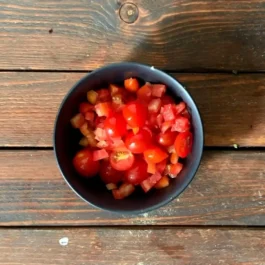 Наріжте дрібно помідори та помідори чері (опціонально).
