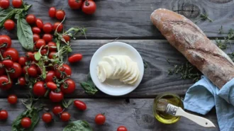 Італійці краще за всіх знають, що таке легкий перекус. Ці смачні та хрусткі брускети з в’яленими помідорами, моцарелою і базиліком дійсно сподобаються вам і вашим гостям. В’ялені томати також чудово пасують до свіжоприготованої пасти зі скибочками моцарели та базиліку. Приємного апетиту!