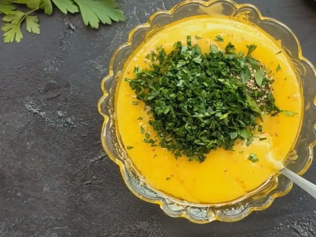 Дрібно порубайте петрушку та додайте до соусу. Поперчіть.