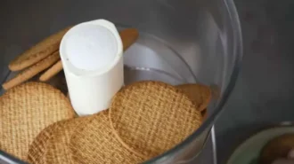Вилийте суміш у форму з викладеними бортиками з печива і рівномірно розподіліть лопаткою.