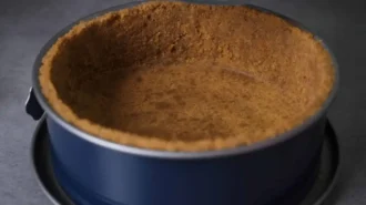 Випікайте в заздалегідь розігрітій духовці (без вентилятора) за 140ºC протягом 1 години 45 хвилин або доти, доки ви не побачите, що краї чізкейка застигли, але центр усе ще трохи погойдується, коли ви обережно рухаєте форму.