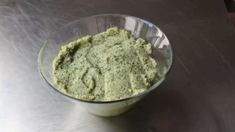 • Змішуємо все в комбайні до дрібного, тісто подібного стану і пересипаємо готову суміш у миску. Накриваємо поліетиленовою плівкою і ставимо в холодильник на 1 - 2 години.
