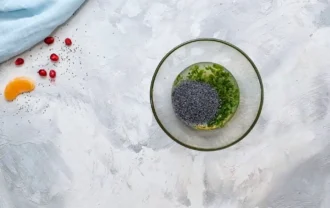 Мандарини можна покласти просто часточками. Гранат чистимо й дістаємо зерна. Решту фруктів нарізаємо будь-яким зручним способом; усе складаємо в одну велику миску.