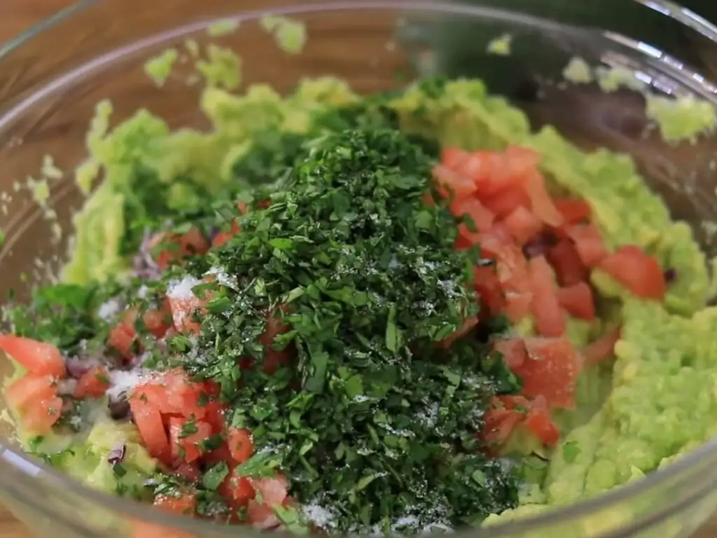 Авокадо одразу потрібно полити лимонним соком і розім'яти виделкою до однорідної маси. Це запобіжить його потемнінню. Потім додайте дрібно порізану цибулю.