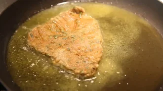 Налийте трохи оливкової олії в плоску пательню, щоб вона покрила поверхню пательні. Нагрійте олію на середньому вогні й тільки тоді можна готувати печінку. Перш ніж її відправити на сковорідку, викладіть печінку в борошно та вмочіть з обох боків. Після цього почніть обсмажувати з обох боків протягом кількох хвилин. Щоб переконатися, що печінка готова, ткніть у неї виделкою. З неї не повинна витікати рожева рідина. Коли страва готова, то можете подавати в гарячому або холодному вигляді з гарніром у вигляді картопляного пюре або з рисом.