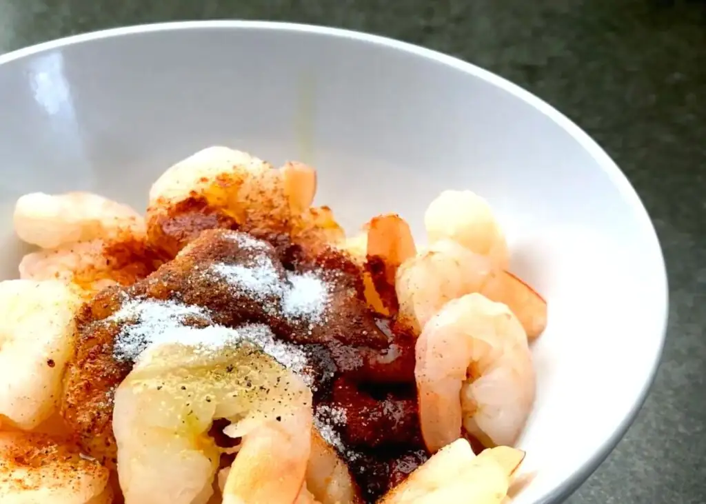У креветки додаємо сушений часник, чорний перець, паприку, лимонний сік, оливкову олію і сіль.