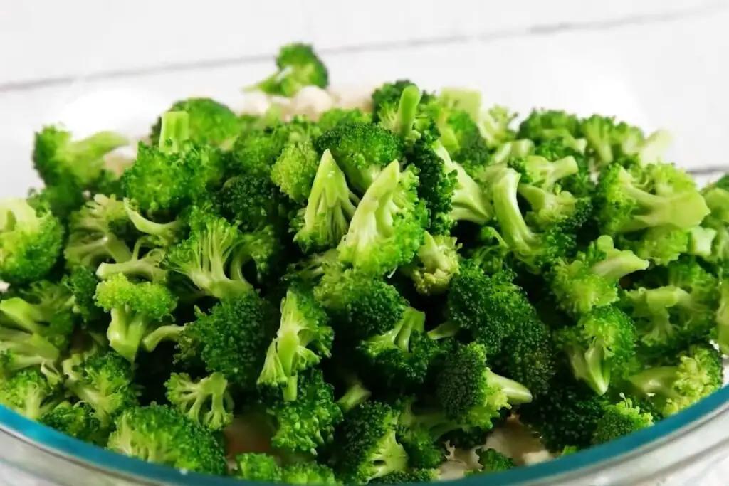 Промийте броколі та цвітну капусту, поріжте на невеликі суцвіття і викладіть у велику миску.