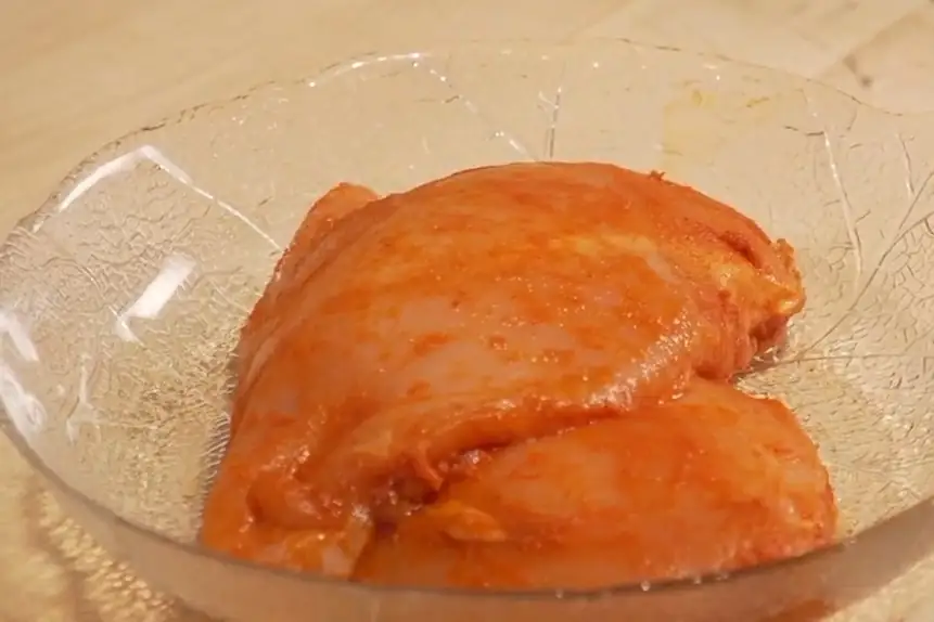 Натріть курячі грудки червоною пастою каррі та залиште маринуватися на 1 годину.