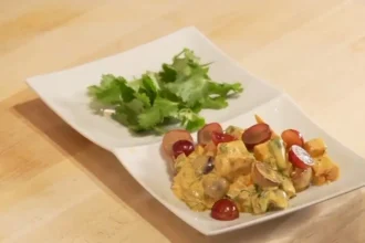 Здавалося б, поєднати в одній страві фрукти і м’ясо складно. Але, кухарське мистецтво не знає меж. Поєднання солодкого винограду і ніжної курячої м’якоті настільки вражає своїм смаком, що салат з виноградом і куркою по праву став улюбленцем багатьох господинь. До того ж, страва має неймовірно ефектний вигляд і чудово підійде, як варіант для святкового столу.