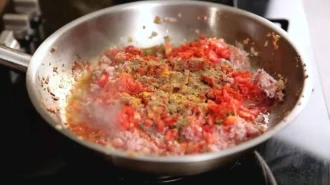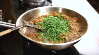 • Робимо фарш із баранини та рівномірно обсмажуємо на сильному вогні.