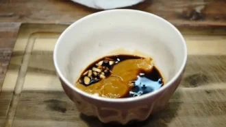 В окремій мисці приготуйте маринад. Для цього ретельно змішайте нарізаний часник, мед і бальзамічний оцет. Залиште на 5 хвилин.