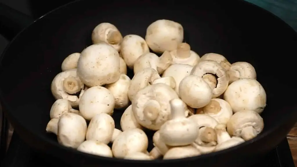 Наріжте дрібно часник. Печериці залиште цілими, але обріжте наполовину ніжки, якщо дуже довгі.