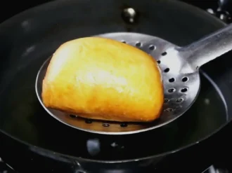 • Смажимо подушечки у фритюрниці, з 2х боків до золотого кольору. Можна використовувати каструлю з достатньою кількістю олії, щоб наші подушечки змогли в ній "плавати".