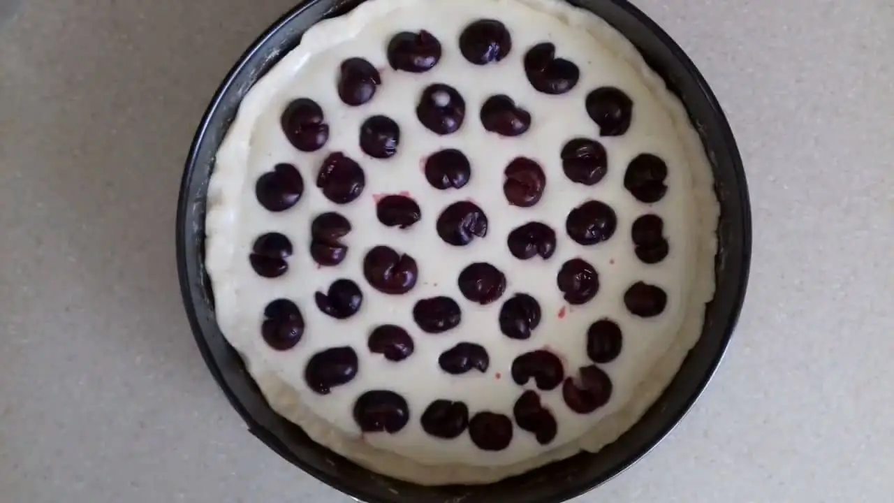 • Укладаємо вишню в пиріг і відправляємо в духовку, розігріту до 180 градусів на 40 хвилин. Після духовки, десерт має охолонути до кімнатної температури і поставити в холодильник на годину, щоб сметанна заливка добре схопилася і просочила пиріг. Пиріг готовий! Можна порадувати себе і своїх близьких!