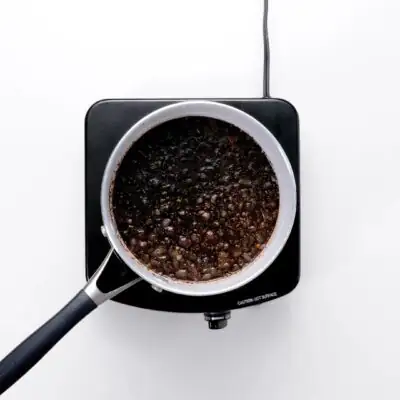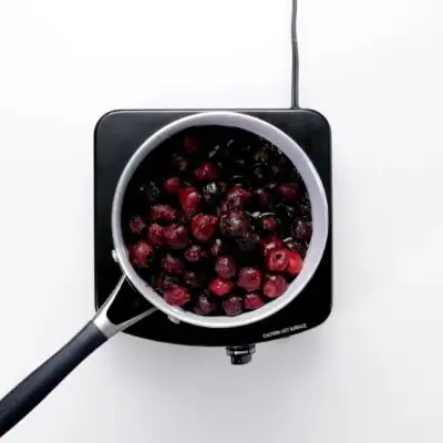 • Додайте томатний соус, вишню, коричневий цукор, апельсиновий сік, яблучний оцет, порошок чилі, гірчицю, сіль, білий перець і каєнський перець і перемішайте. Доведіть до кипіння, потім зменшіть вогонь до мінімуму і варіть до легкого загустіння, близько 30 хвилин, періодично помішуючи. За бажанням можна додати крапельку рідкого диму, щоб надати копченого смаку.