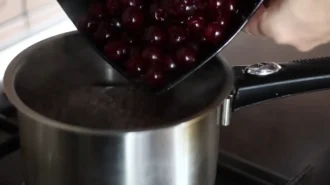 Готуйте 10 хвилин на повільному вогні. Ви можете додатково помішувати вишні виделкою під час приготування.